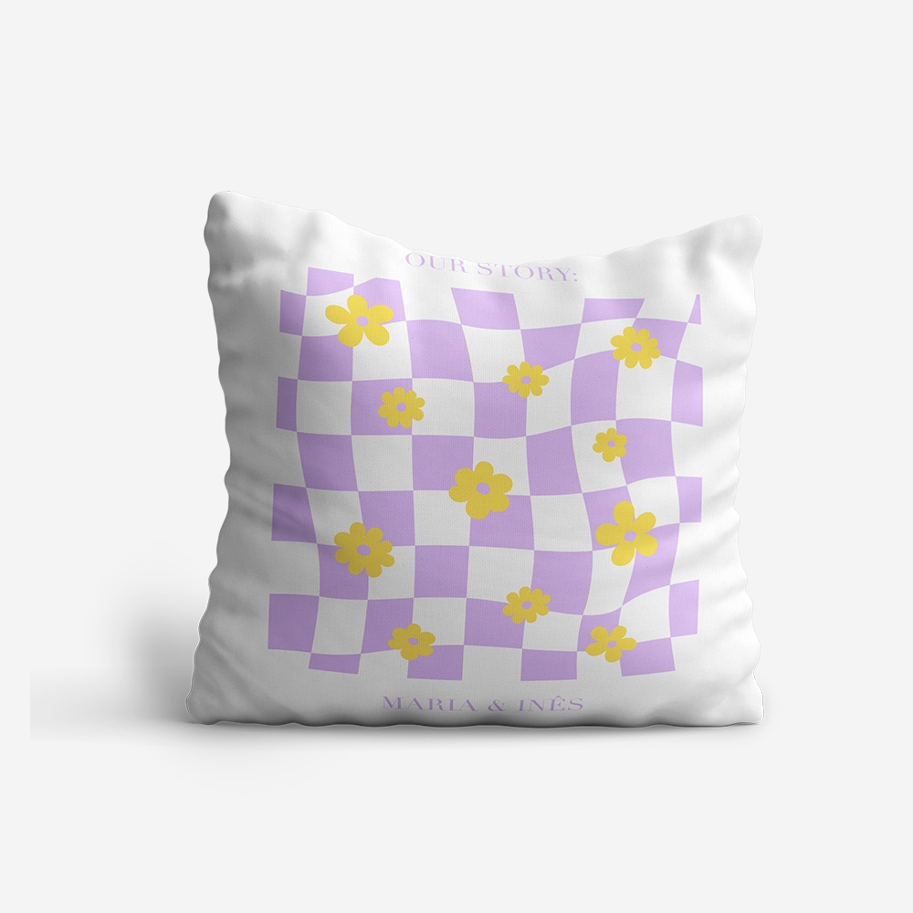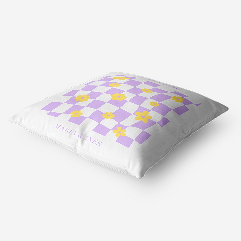 Entre o lilás suave e o amarelo vivo, esta almofada traz a leveza da primavera diretamente para o teu interior. Um jogo de formas geométricas que quebra a monotonia e transforma qualquer canto num cenário digno de uma revista de design.